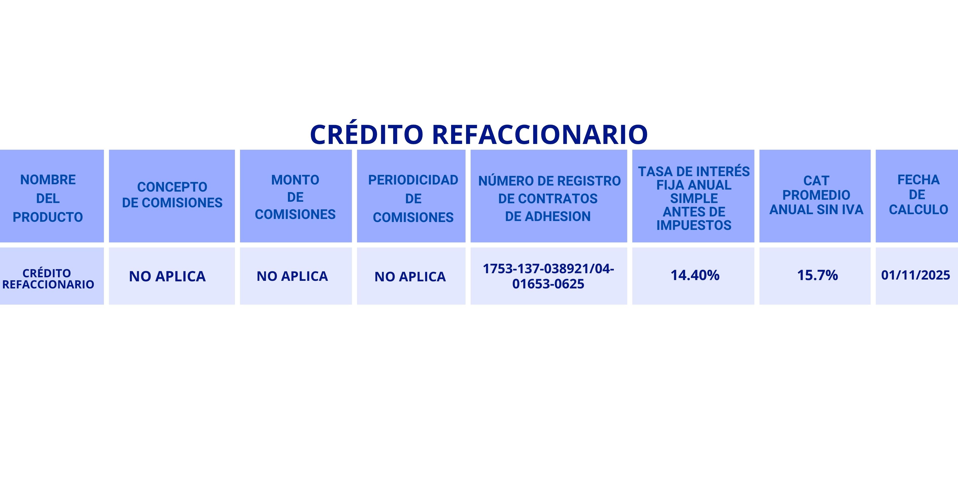 Requisitos de acuerdo a la finalidad del crédito, para mayor información acude a tu sucursal